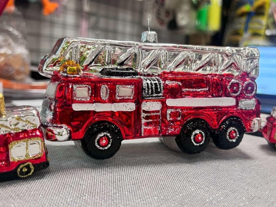 Imponująca bombka szklana w kształcie wozu strażackiego to wyjątkowa ozdoba choinkowa, która zachwyci nie tylko najmłodszych! Wykonana ze szkła dmuchanego i ręcznie malowana, łączy w sobie precyzję wykonania i bogate, błyszczące detale. Czerwony lakier, srebrne elementy i złote akcenty sprawiają, że bombka pięknie odbija światło choinkowych lampek.