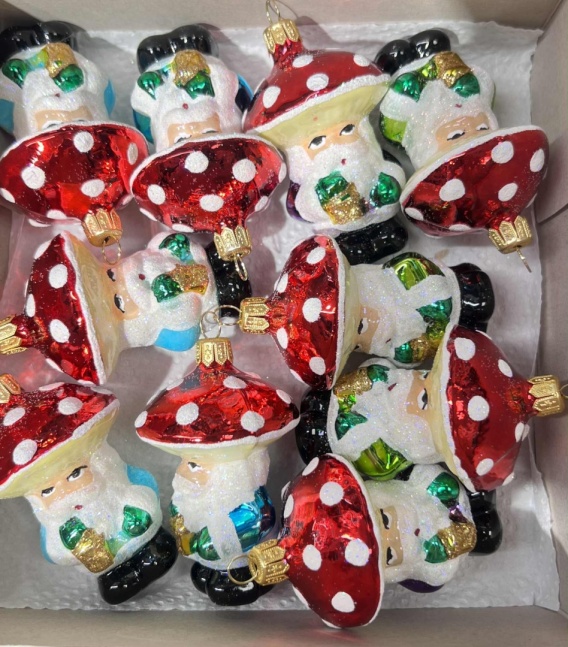 Urocza bombka szklana Grzybek Gnom to połączenie tradycji i fantazji, które doda Twojej choince wyjątkowego uroku. Ręcznie malowana, z dbałością o każdy detal – od czerwonego kapelusza w białe kropki po brodę i mieniące się ozdoby w dłoniach gnoma. Każda bombka wykonana jest ze szkła dmuchanego, co sprawia, że jest lekka, ale bardzo efektowna.