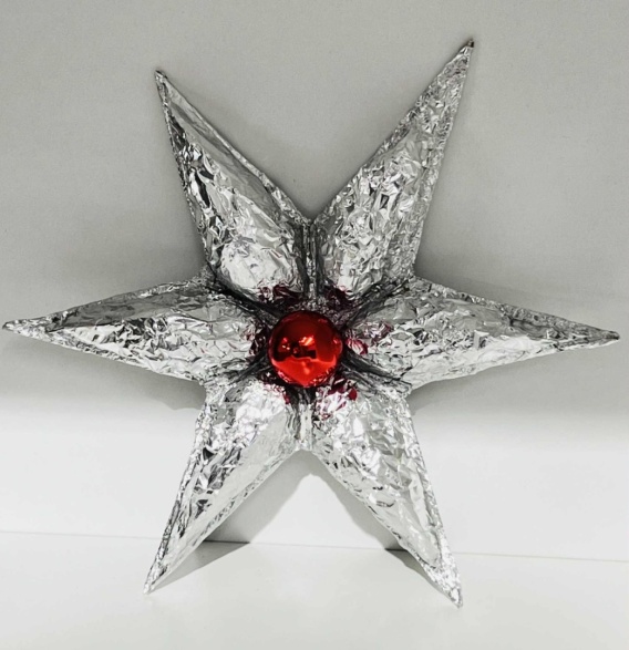 Wielkość gwiazdy 23 cm.kolor bombki w środku czerwona lub złota.